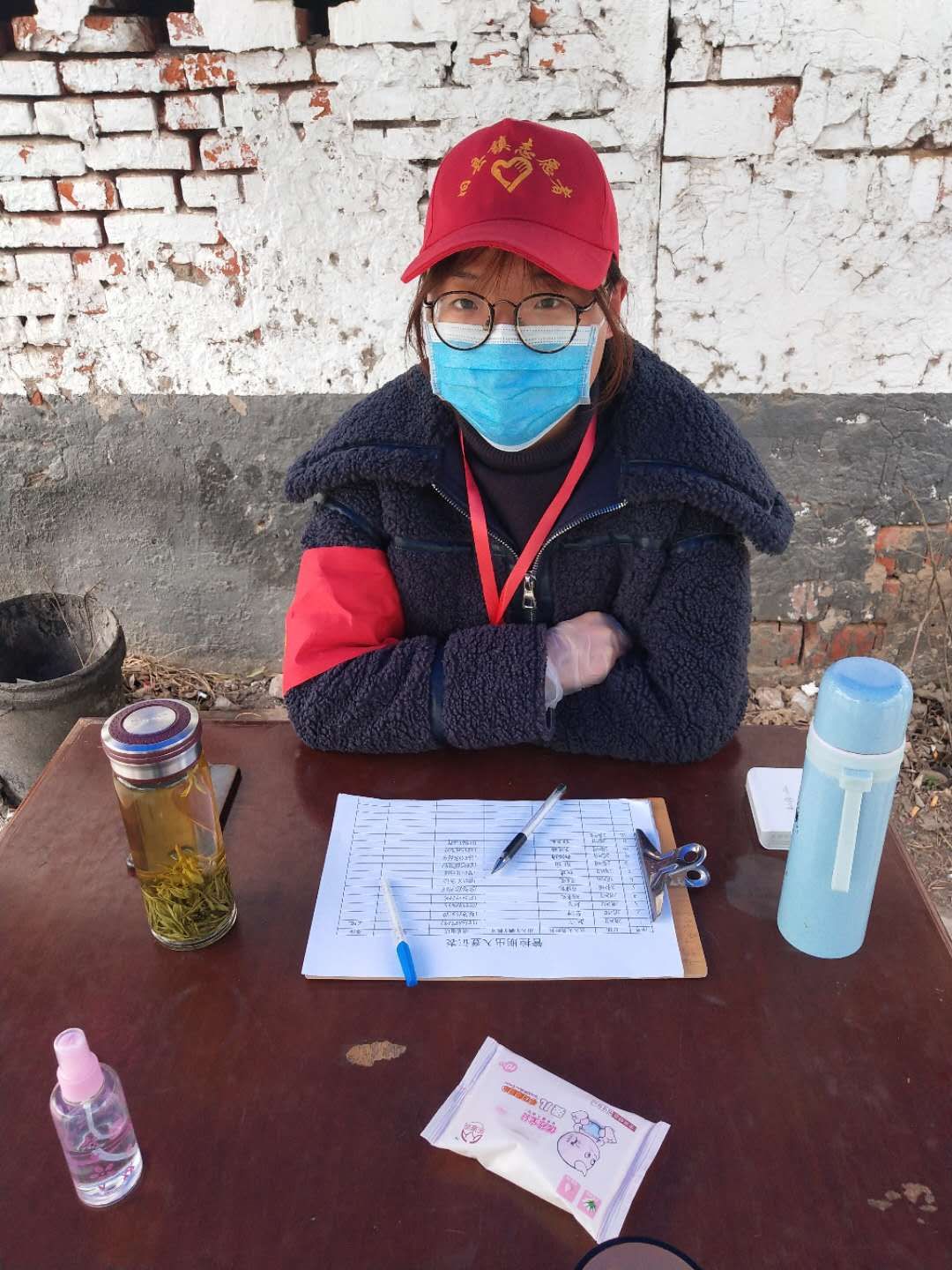 自疫情开始,心中就有一颗想要去奉献的心。偶然一次机会中得知,共青团员可以去当地社区报到,成为疫情防控志愿者。听闻这个消息后,2016级化学师范班马小悦当即跑到当地社区,成为防控疫情志愿者的一份子。从2月21号开始,在安徽省阜阳市太和县旧县镇颖河新村关卡对出去人员进行检查、控制、消毒、量体温以及防止外来人员随意进出。通过此举可以更好的控制人员进出,防止疫情的扩散。