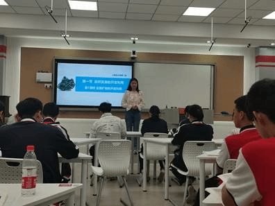 到达工大附中后,朱金苗一行前往多功能录播室听取了安徽省师范生技能竞赛二等奖获得者、2020级化学专业实习生王紫璇执教的《金属矿物资源的综合运用》汇报课。