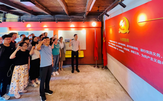 在姚村苏维埃政府旧址,全体党员认真聆听了陈建富、阮大佑、李同洲等人的革命故事,回顾了革命先烈的峥嵘岁月,感受革命先烈的崇高精神。大家经历了一次灵魂的洗礼和升华,受到了深刻的党性教育。在旧址内,全体党员重温入党誓词,进一步坚定理想信念,切实增强责任感和使命感。