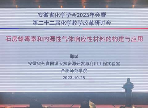 2023年10月27-29日,由安徽省化学会主办、巢湖学院化学与材料工程学院承办的“安徽省化学学会2023年会暨第二十二届化学教学改革研讨会”在巢湖召开。大会围绕高等学校化学、化工、材料及相关本科专业一流专业和一流课程的建设、实验室安全、学科发展与学位点建设、应用型人才培养质量以及课程思政等主题进行了交流和研讨,来自全省高校化学、化工相关教师及企业代表200余人出席会议,我校awc77万象城官网郑斌教授率队参加本次会议,并应邀在大会青年论坛上做学术交流。