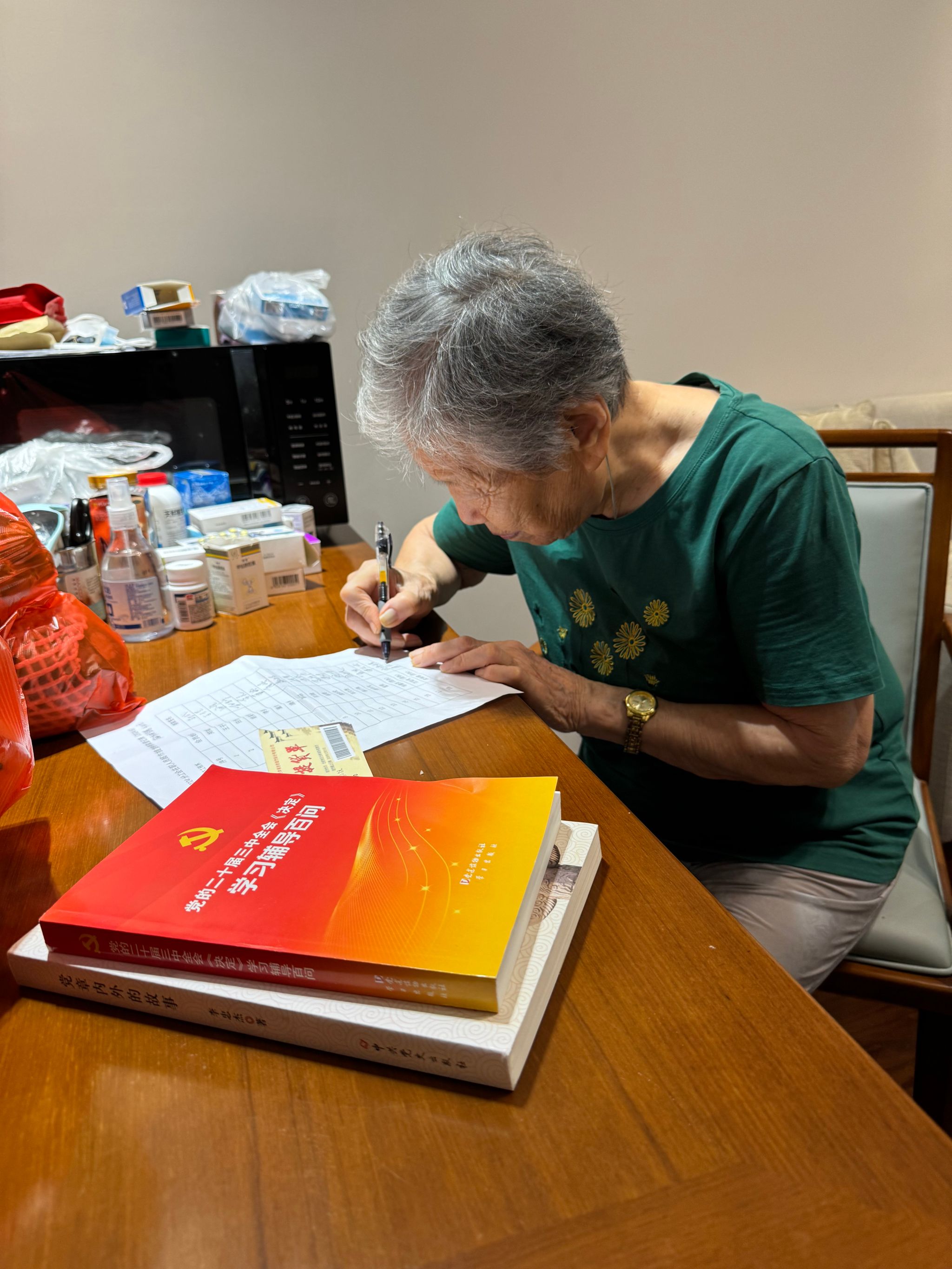 在走访过程中,李红详细了解了孟桂娟的思想动态、身体状况以及学习情况,并向她介绍了学院近期发展情况,以及退休党支部建设情况,耐心倾听她对学院工作的意见与建议。最后,李红将新出版的《党的二十届三中全会《决定》学习辅导百问》等学习资料赠予孟桂娟,鼓励她利用闲暇时间及时学、跟进学,力求政治生活不掉队、学习教育全覆盖。孟桂娟表示:“感谢组织惦记我,专程上门给我送来最新的学习资料,让我们这些老同志的思想能够进一步提升”。