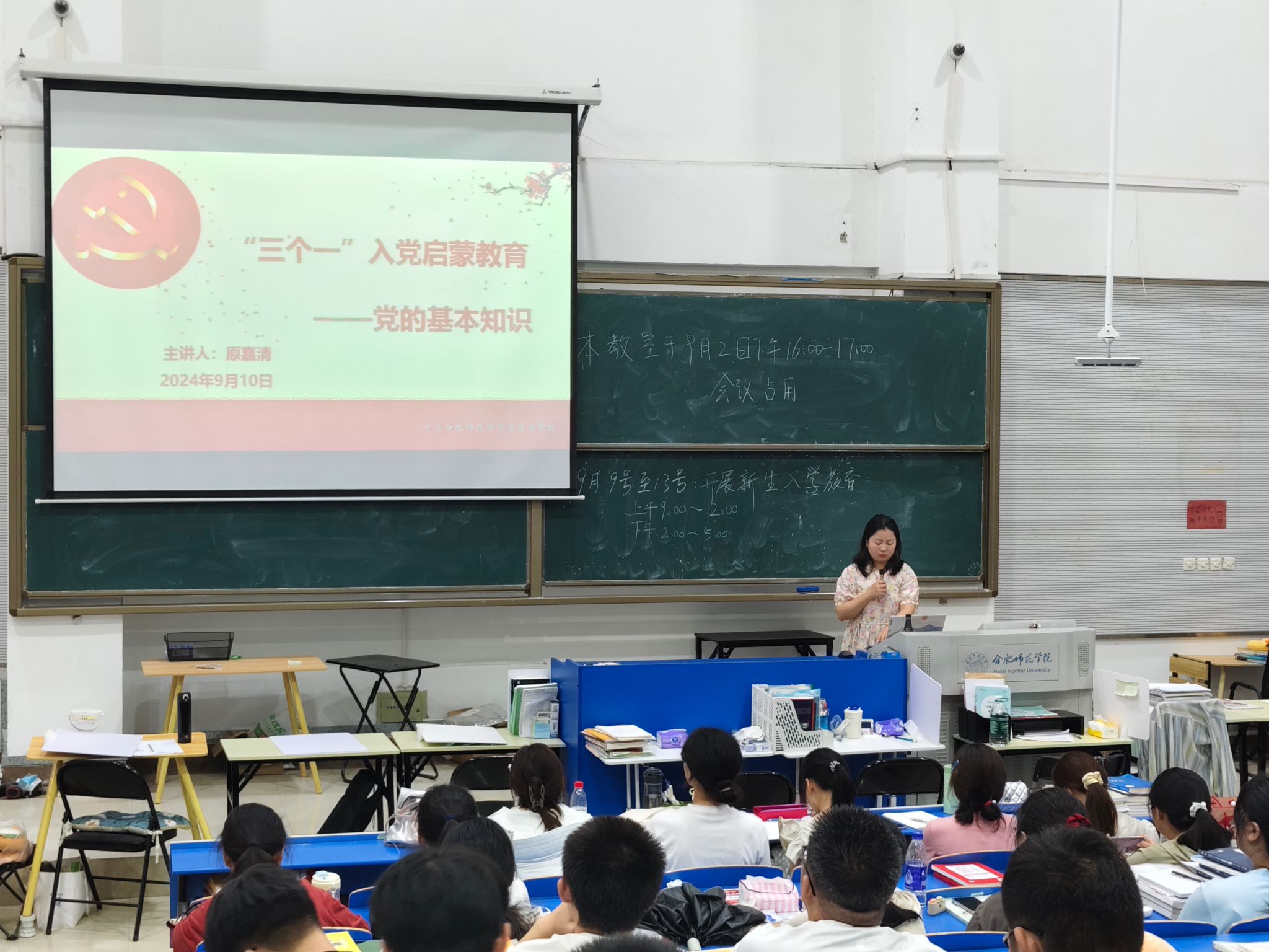为深入学习贯彻党的二十届三中全会精神,做好新生入党教育,帮助新生端正入党动机,普及党的基本知识,并积极发挥身边优秀党员先进事迹。9月10日,awc77万象城官网召开“三个一”入党启蒙教育讲座。本次讲座由学生支部书记原嘉清主讲,2024级全体新生参加讲座。