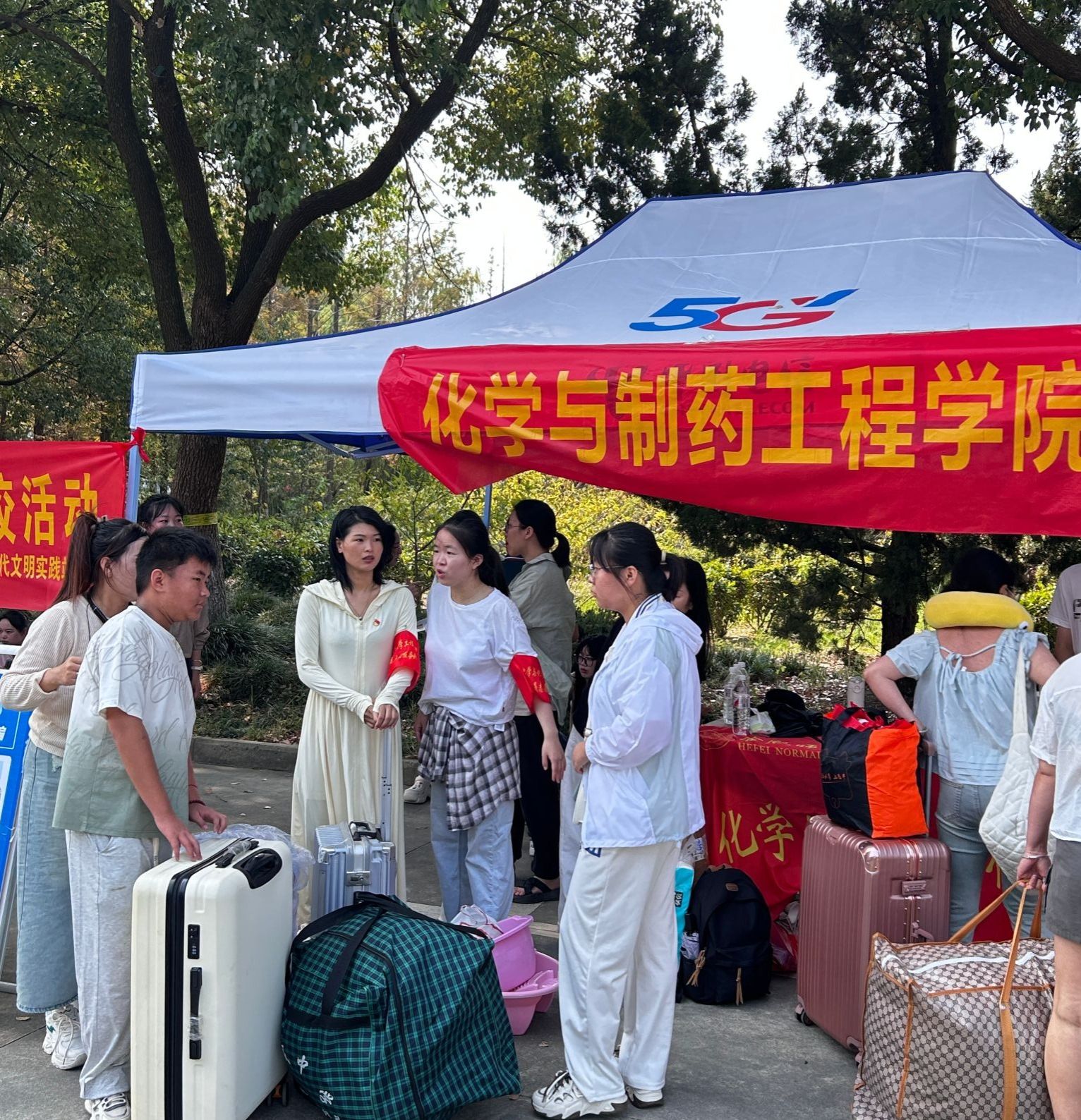 在宿舍区,党员志愿服务队志愿者帮助新生完成宿舍登记和行李搬运工作。他们不仅是新生们的引路人,更是新生入党启蒙教育的第一人。在搬运途中,党员们还不忘与新生交流,分享自己的大学生活经验,让新生们感受到来自学院的关怀与温暖。
