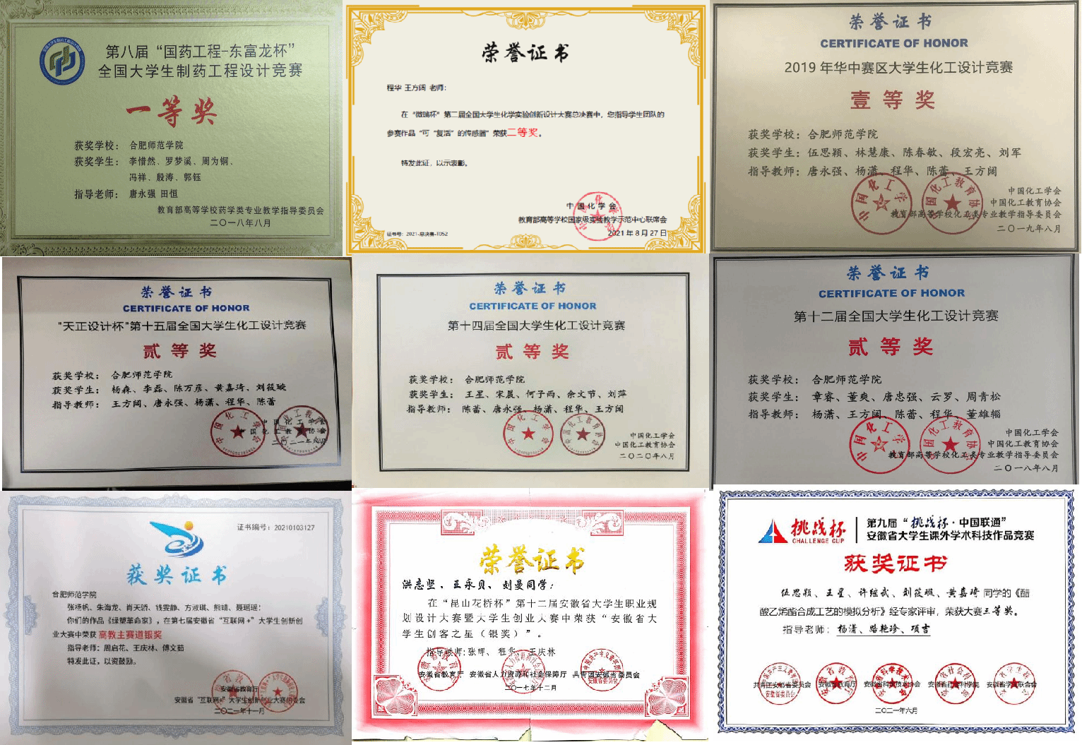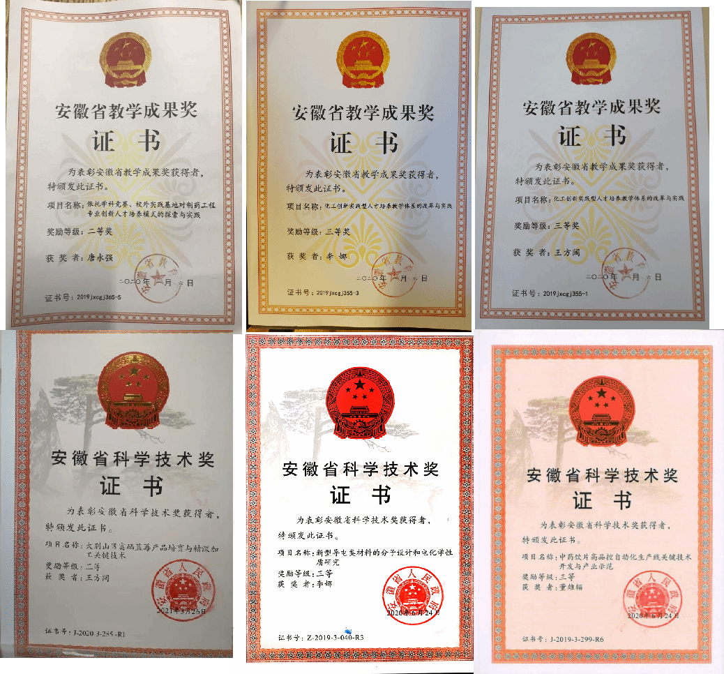(1)师资队伍稳步提升。现共有专业教师16人,副教授及以上职称的教师7人(其中教授5人),占专业课教师总数的比例为44%,其中具有博士学位教师14人,是一批学术水平、教学水平高的教师队伍。在教学方面,本专业教师2018年获批校级高水平教学团队建设项目1项,并先后获得多项校级及以上教学成果奖;在科研方面,本专业教师先后获得安徽省科学技术奖三等奖三项。除了本校的专业教师之外,本专业还外聘了一批与化学工程与工艺专业息息相关的高层次的教授和工程师,指导化工专业建设、参与人才培养方案修订,参与化工安全与环保、化工设计、化工导论等专业课程教学工作,定期来学校开展学术讲座。