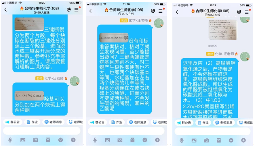 接到学校在线教学的通知,我就开始了思考,怎样把隔空教学变得更生动,让疫情期间居家的孩子们主动学习,能收获更多的东西。在线教学过程中,教师的权威性和吸引力下降,不可能像传统课堂那样对学生的学习进行监督把控,必须对课堂教学的过程进行再造。不过,这对于到退休年龄的我来说,“雨课堂”、“QQ直播群”还是陌生得。针对平台操作这一陌生事实,我知道不懂就要问。我积极请教本系其他老师,探讨问题出现的原因,研究并解决了教学工程中出现的小问题,感到很高兴。同时,又考虑到直播授课可能受网速、设备的影响,加之部分学生地处偏远,担心影响学生的学习效果。最终,经过一番摸索与训练,学会了QQ直播间的应用。