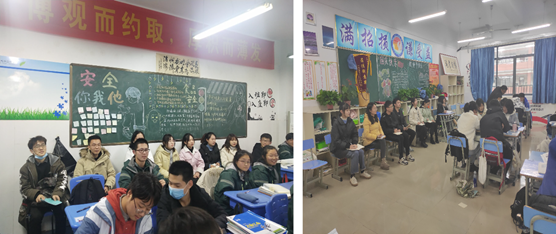 在校外指导老师和见习学生的见面会后,校内指导老师与学生一起,立即投入到了听课、评课等教学活动中。