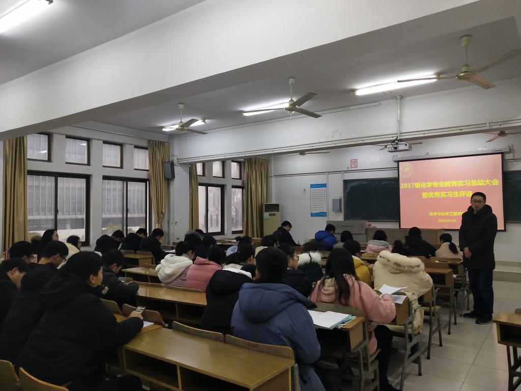 本网讯 1月3日上午八点半,化学与化学工程学院于锦绣校区博约楼310教室召开了2017级化学专业教育实习总结暨优秀实习生评选会,化学与化学工程学院院长董华泽教授、化学教育系全体教师及2017级化学专业全体同学参加了会议,会议由化学教育系主任凌波主持。