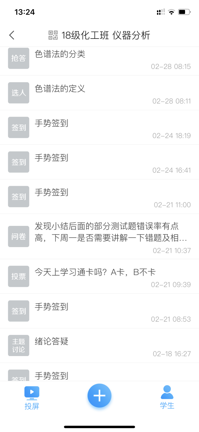 课程建设。在开学前,我充分利用好学校现有的优质网络资源,积极加入学习通、在线教育综合平台、雨课堂等教学系统,学习、交流课程建设及在线授课方法,并结合所教学生的基础水平及学习方式等特征,最终在学习通上进行了《仪器分析》课程的建设,精心选取国家级精品课程等视频资料,学生可以从学习通上获取学习资源,也可以进行课程内容的讨论、课堂测试及提交作业。确保在这个特殊时期,老师和同学们依然可以在云端如约“见面”,共同对知识进行学习和探讨。