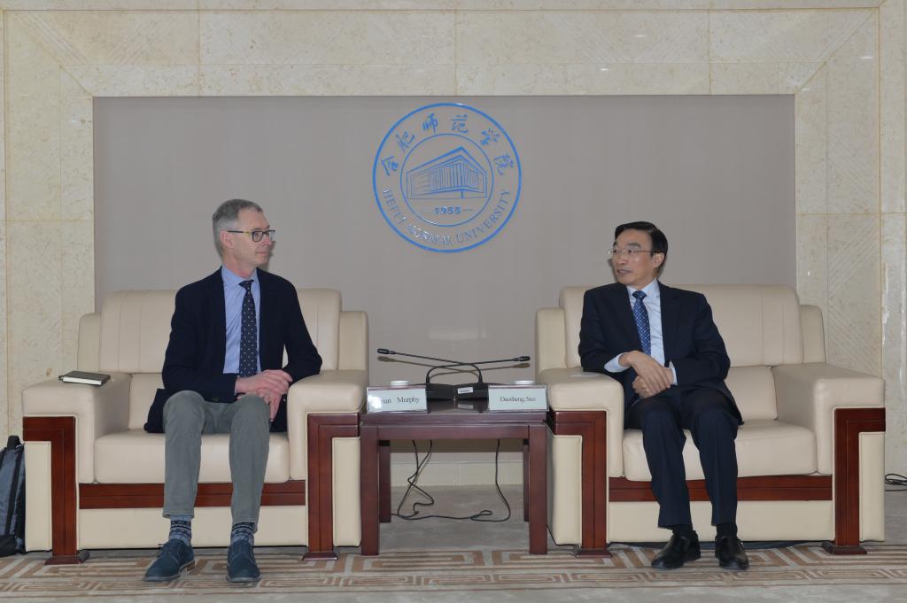 本网讯4月10日,爱尔兰阿斯隆理工学院(AIT)布莱恩﹒墨菲博士受邀访问我院。院党委副书记、院长孙道胜教授亲切会见了爱尔兰客人。国际交流与合作处处长张宇翔教授、化学与化学工程学院朱金苗教授、郑斌博士等陪同会见。