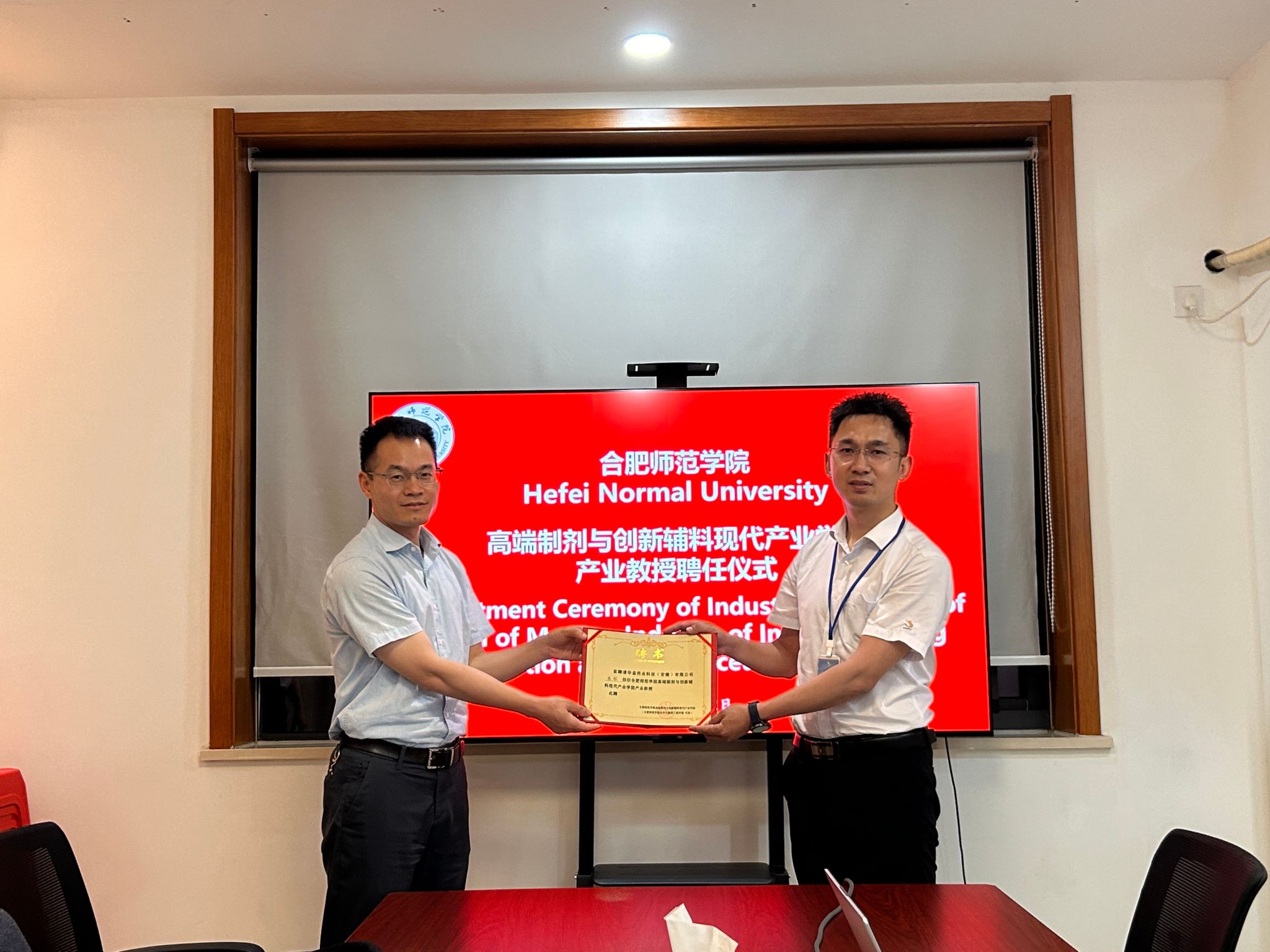 交流会上,操铖和吴莹莹首先详细介绍了华益药业科技(安徽)有限公司在技术创新、人才培养等方面取得的成果。朱金苗、Nicholas Mullins相互介绍了双方共同推动产业学院工作中取得的成绩。产业学院为爱尔兰高校和企业代表授予了产业教授聘书。