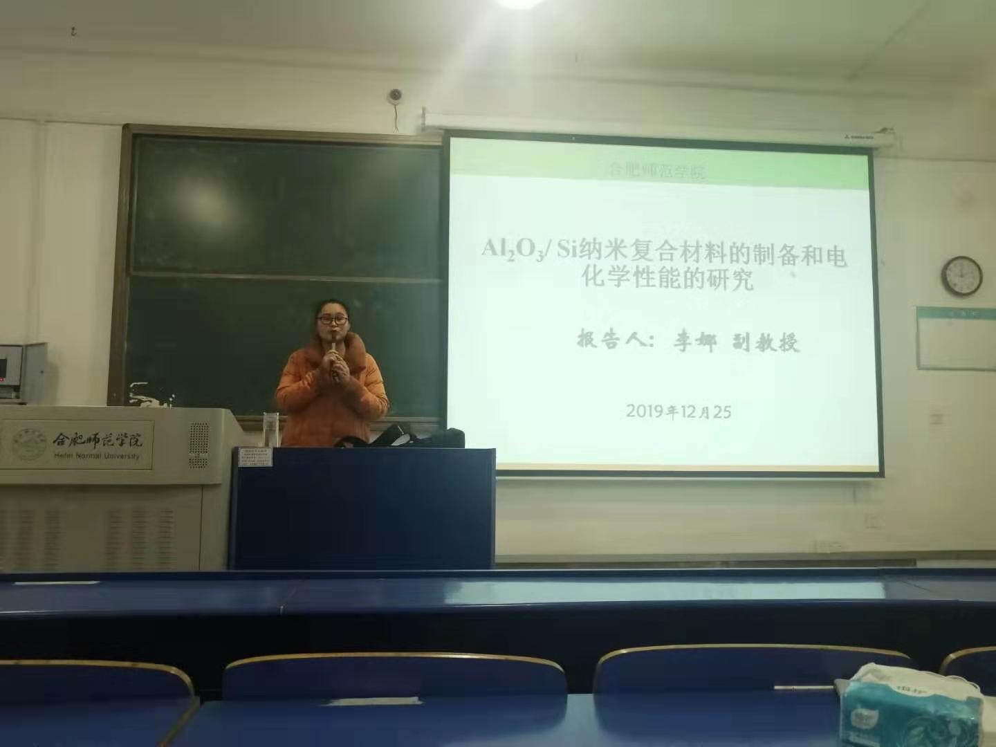 12月25日下午,“行知讲堂”学术报告在锦绣校区逸夫楼A101教室举行。本场报告由化学与化学工程学院李娜副教授主讲,主题为“Al2O3/ Si纳米纳米复合材料的制备和电化学性能的研究”。