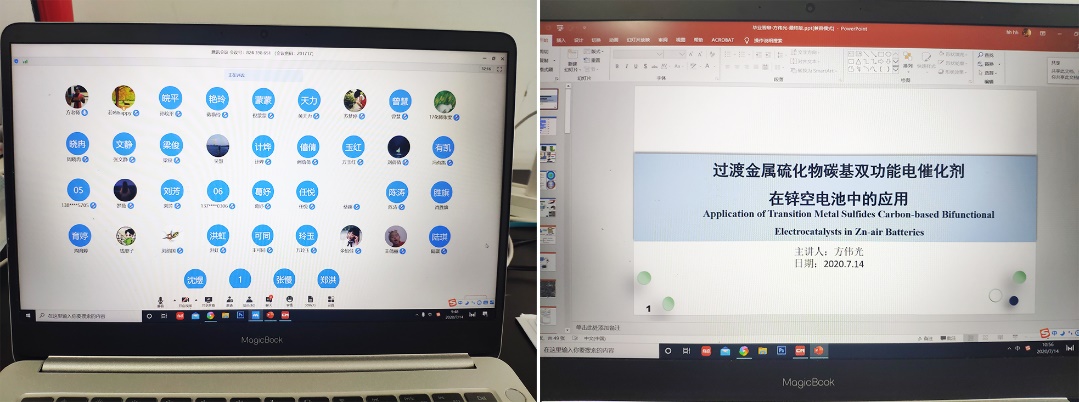 本网讯 7月14日上午10时,化学与化学工程学院方伟光博士借助腾讯会议线上平台,做了“过渡金属硫化物碳基双功能电催化剂在锌空电池中的应用”的学术报告,化学专业学生聆听了报告。
