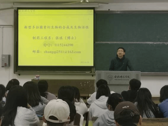 本网讯  2022年4月28日,在博约楼215,制药工程系张琪博士做题为“新型多拉菌素衍生物的合成及生物活性研究”行知讲堂学术报告,制药、药剂,化工、化学等专业学生聆听了学术报告。