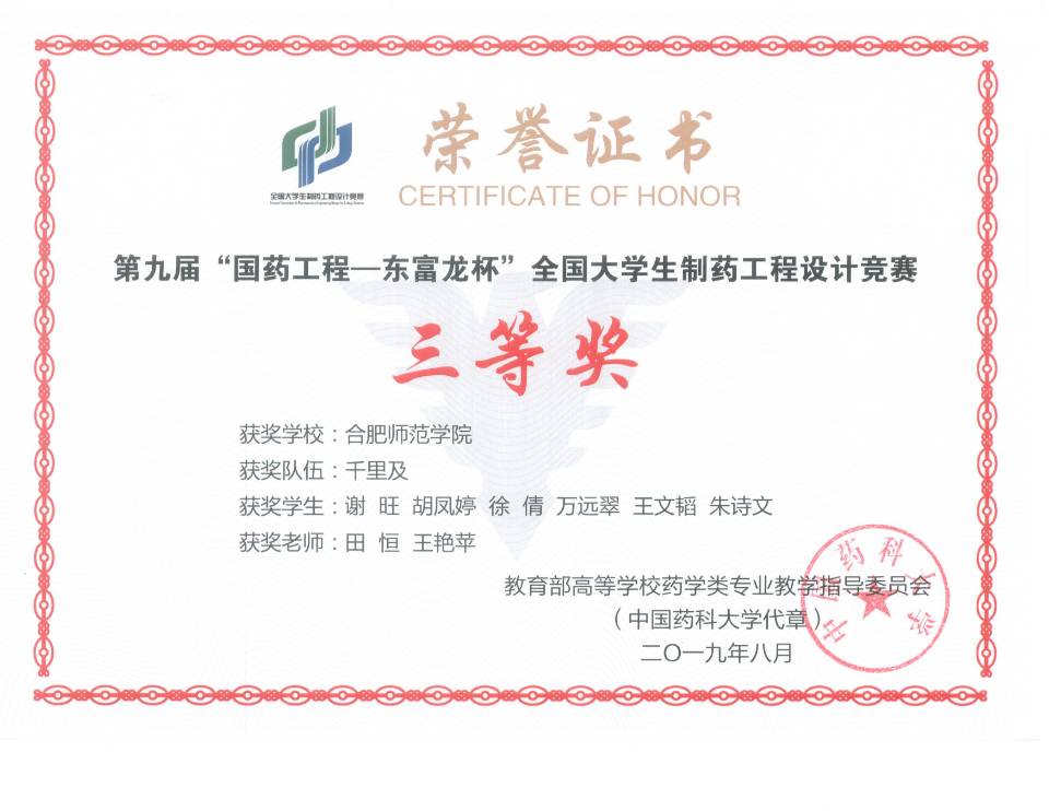 为了进一步检验制药工程专业教学效果、学生培养质量,达到以赛促学、以赛促教的目的,化学与化学工程学院再次组织学生参加全国大学生“制药工程杯”大赛,两个团队均获得了该赛事三等奖。