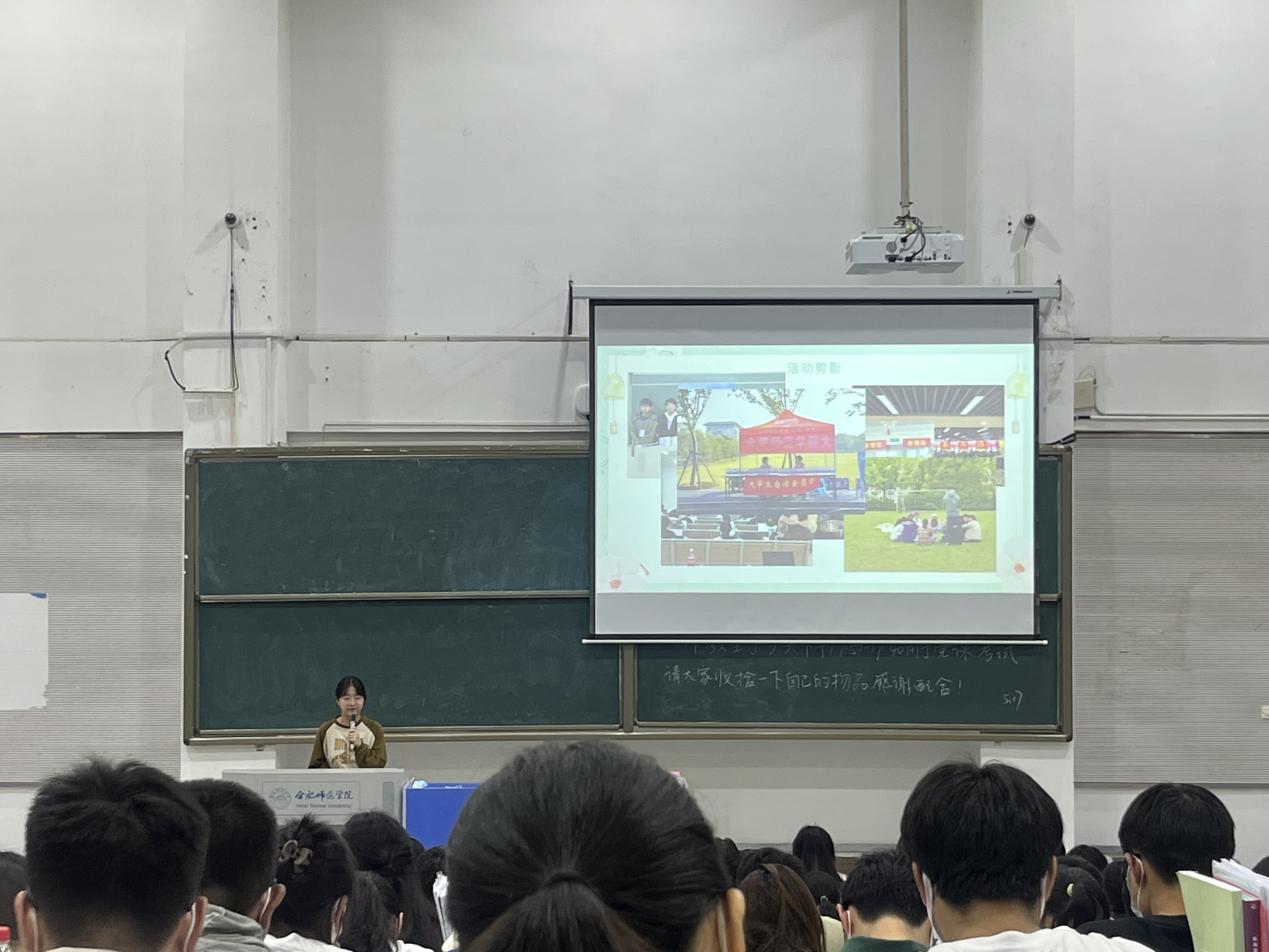 彭智群分享了自己的“多重身份”,分享了在班级、自律委员会工作和一些大型比赛中的经历与感悟,激励同学们学会寻找机会、抓住机会;表示自己所获得的成就离不开国家、学校的关怀和帮助,正是有了国家和学校的资助政策与奖助学金,才能让自己心无旁骛,激励自己更加努力。