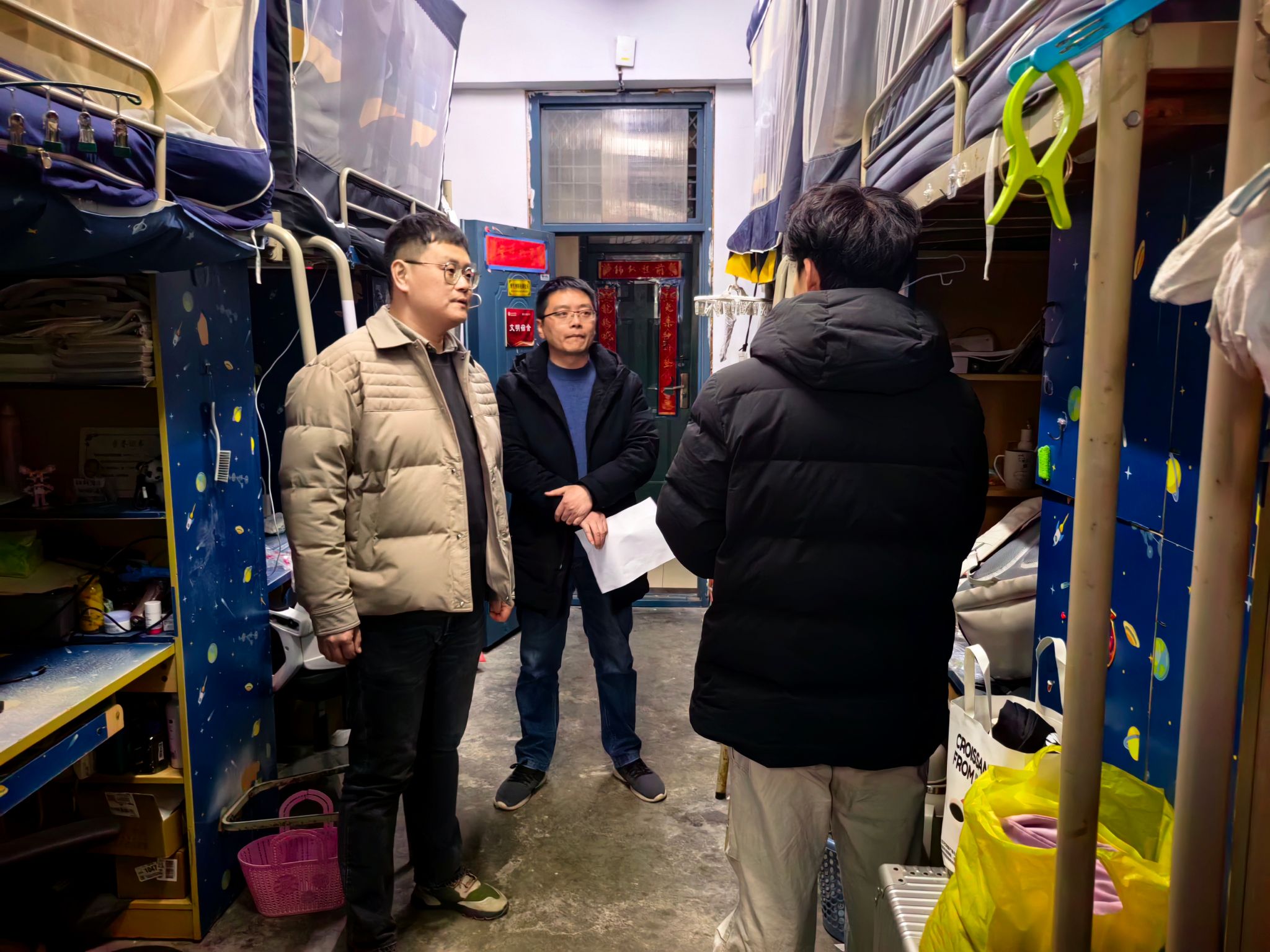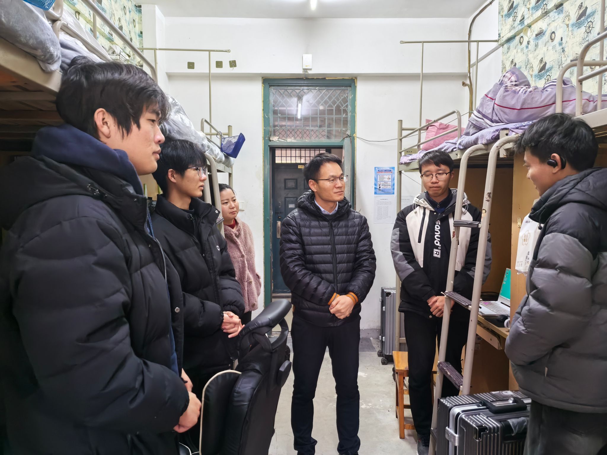 本网讯 新学期伊始,为深入了解学生思想动态,促进学生以良好的精神面貌投入新学期的学习和生活,2月15日和16日,awc77万象城官网领导带领辅导员深入学生宿舍进行走访,为同学们送去关爱与温暖。