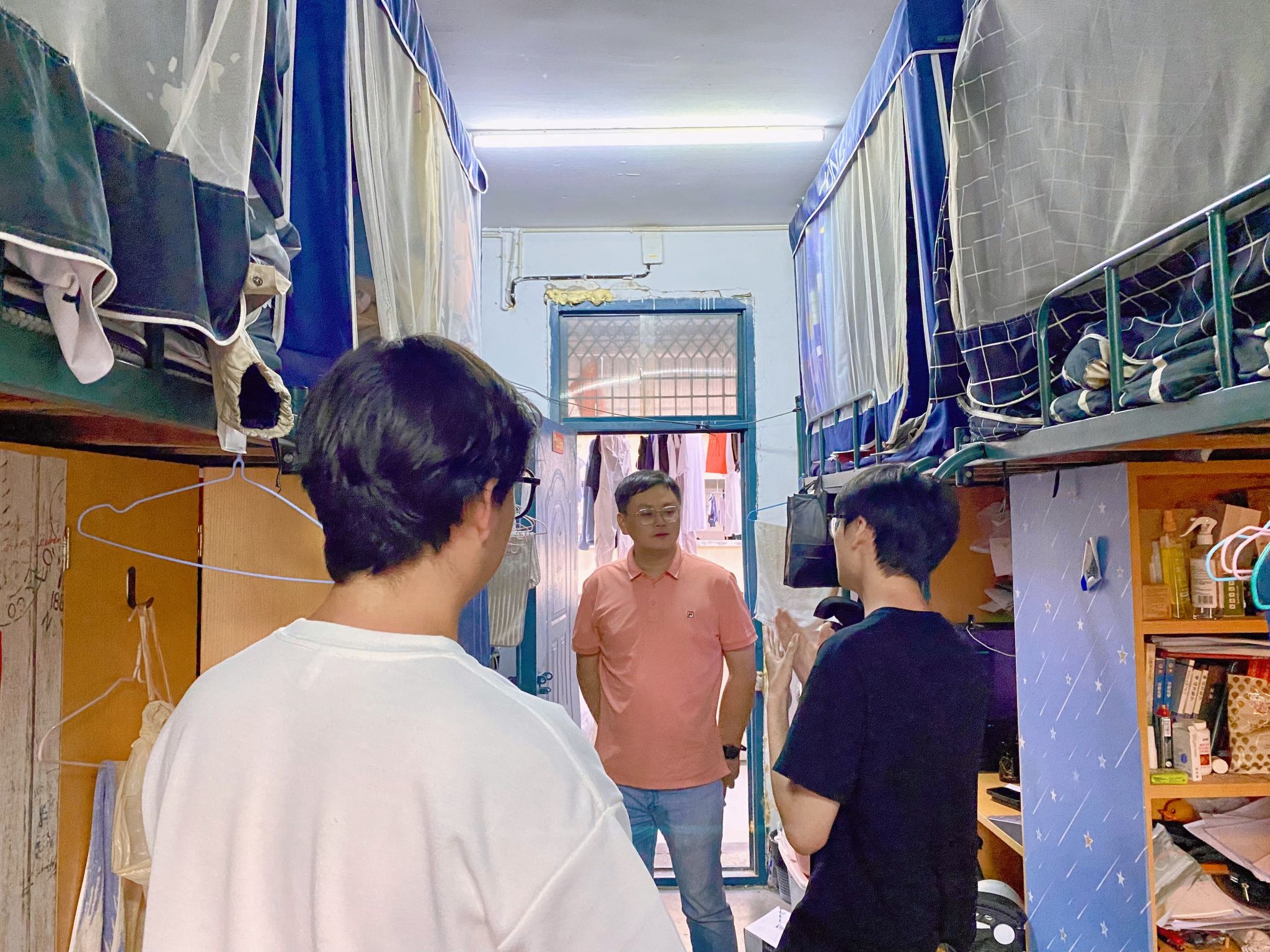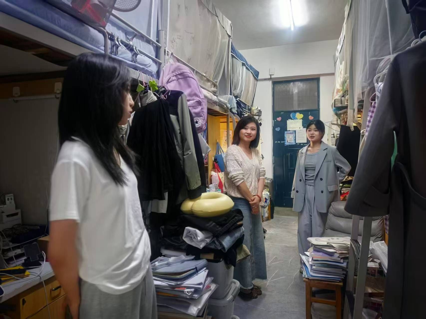 5月12日晚,awc77万象城官网党委书记刁文彬、党委副书记朱晓熠、毕业班辅导员一同前往2025届毕业生宿舍,开展走访慰问活动。