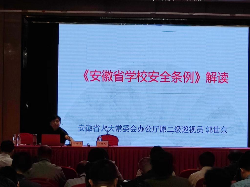 7月25日-27日,我院在丰大国际大酒店成功承办安徽省2023年校园安全管理专项培训班,本次培训班由省教育厅主办,我院承办。各省辖市教育行政部门负责中小学幼儿园安全管理工作负责同志、职能科(处)室主要负责同志,各县(区、市)教育行政部门负责中小学幼儿园安全管理工作负责同志,部分中小学校长、幼儿园园长等共计201人参加培训。培训班安排专家讲座2场,参观1场,以校园安全为主题的交流研讨2场次。