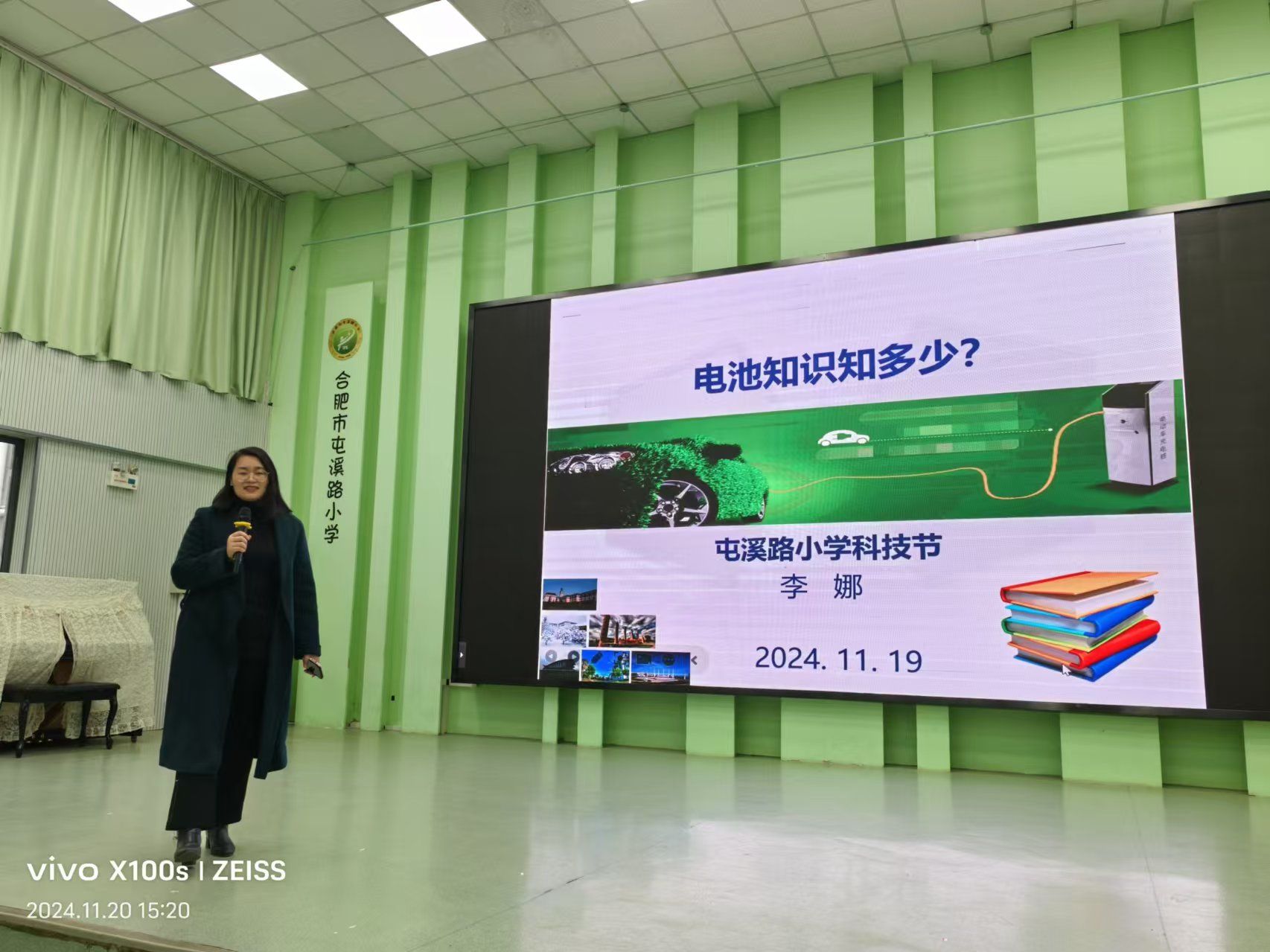 另一位受聘教师李娜也积极建言献策,她提议可以通过科普活动、行知学堂、科普比赛、场馆参观等形式开展科学教育。11月18-22日,在挂职学校举行的2024年度校园科技节活动中,她先后为六年级全体同学讲授了两场题为《电池知识知多少》的精彩讲座,在丰富同学们课外科学知识的同时,还激发了小学生们对自然科学的浓厚兴趣。