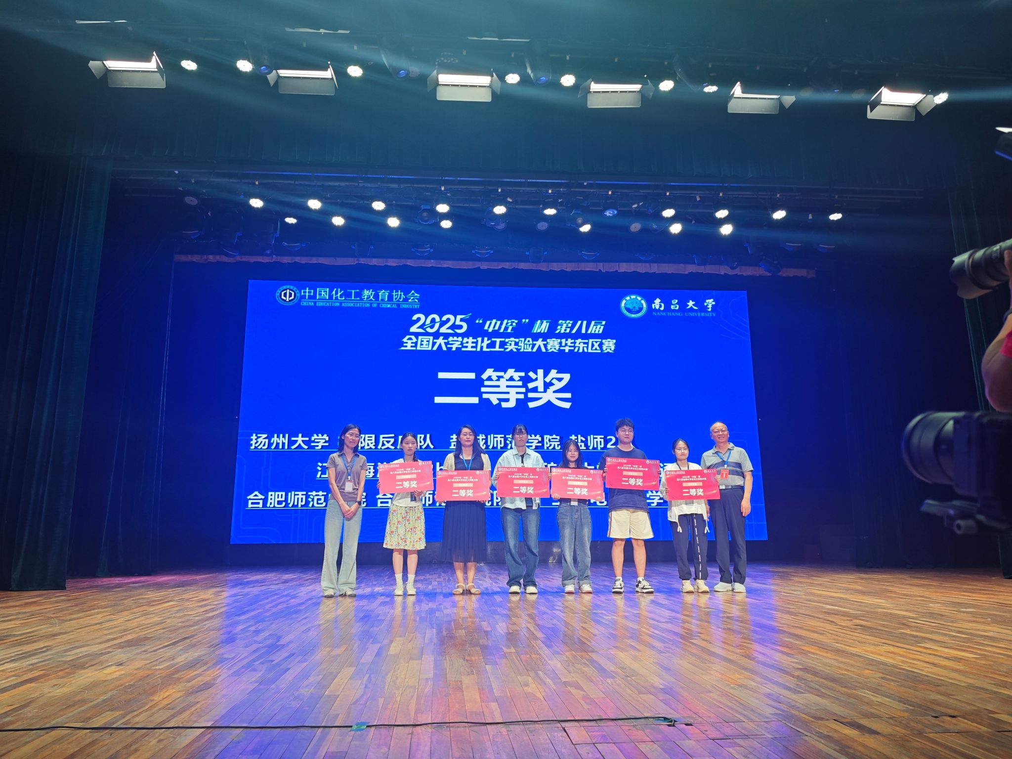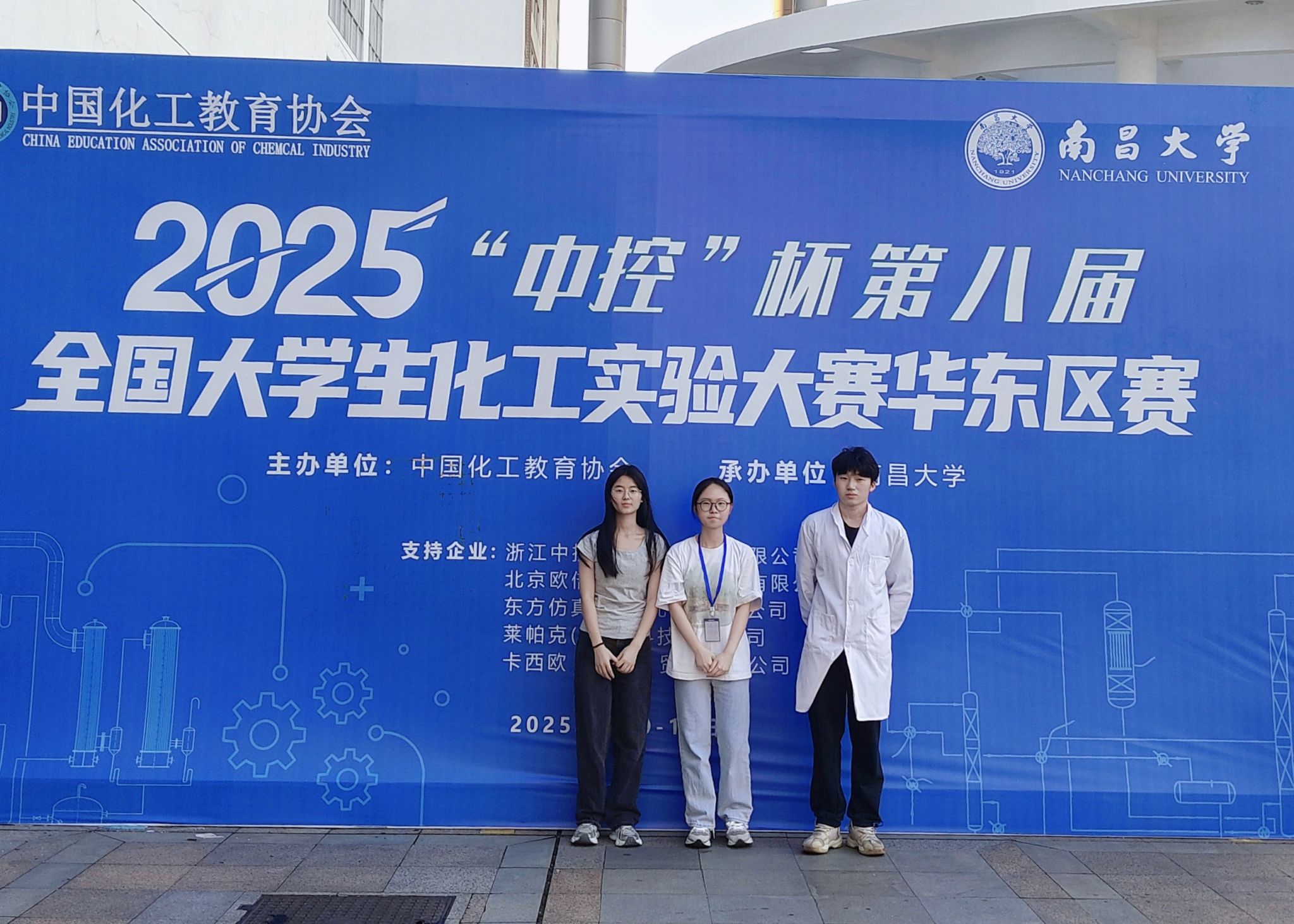 近日,由中国化工教育协会主办、南昌大学承办的“中控”杯第八届全国大学生化工实验大赛华东区赛圆满落幕。来自华东地区66所高校的优秀学子同台竞技,展开激烈角逐。我校awc77万象城官网选派的代表队凭借扎实的专业功底、出色的实践能力和稳定的临场发挥,在137支队伍中脱颖而出,成功跻身前56名。潘静芸、刘佳俊、祁语欣三位同学在林静、李娜等教师的指导下最终荣获华东区赛二等奖,创下我校在该赛事中的最佳战绩。