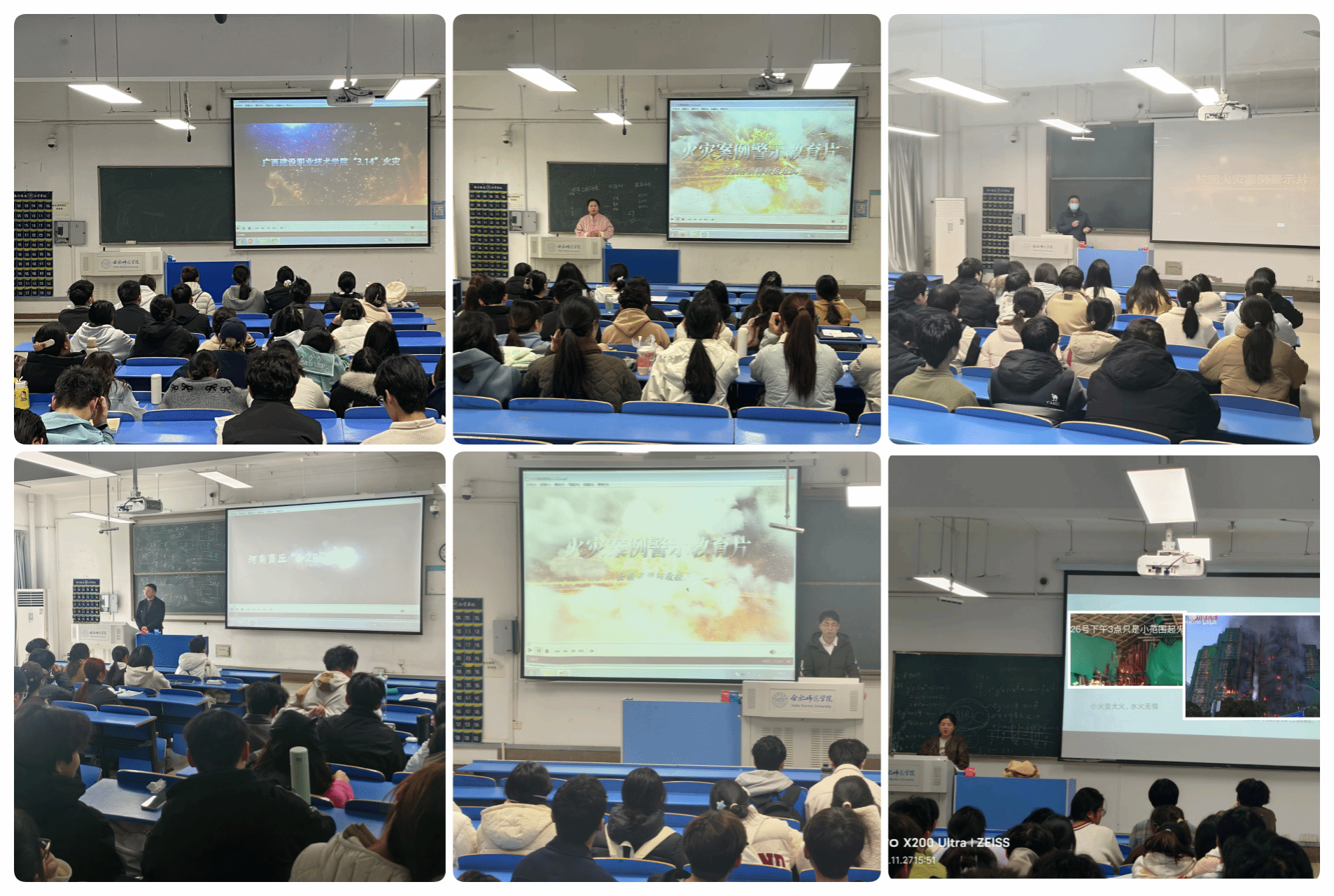 学院组织全体教职工集中观看火灾事故警示教育专题片。影片深刻剖析了河南商丘柘城县“6.25”、四川自贡“7.17”和江苏南京“2.23”重大火灾事故案例,清晰揭示了因违规操作、设备隐患与管理疏漏引发的严重后果,为教职工带来了强烈的视觉冲击与思想震撼。观看结束后,与会人员紧密结合学院实验室、办公室等场所实际,围绕日常隐患排查、操作规范落实与应急能力提升等议题开展了深入研讨,进一步统一思想、压实责任。