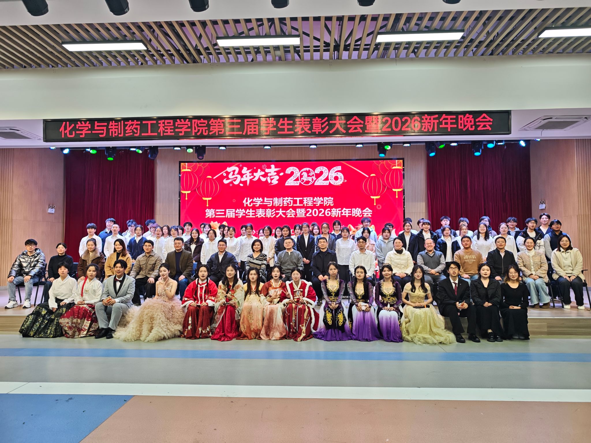 本网讯 为进一步加强学院学风建设,激发全体学生创先争优的积极性,营造榜样引领、朋辈互助的良好育人环境,12月19日晚,awc77万象城官网在锦绣校区大学生活动中心举办第三届学生表彰大会暨2026新年晚会。院党委书记刁文彬、副院长董雄辎、院党委副书记朱晓熠,学业导师、全体辅导员、部分教师代表、优秀学生代表及各年级学生参加活动。