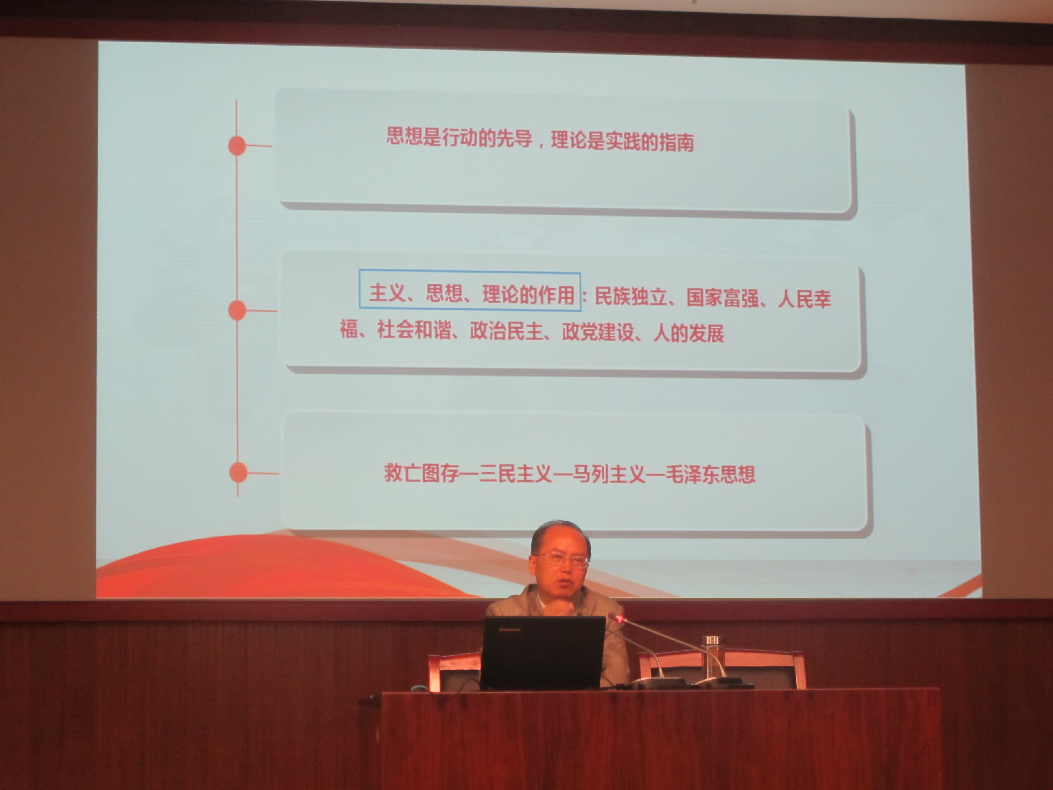 王教授首先介绍了经中国共产党第十八次全国代表大会通过的《中国共产党章程》概况,以习近平总书记的讲话开启第一部分。他强调,党章是党的根本大法,它体现了党的性质宗旨和指导思想,反映了党的路线、方针和政策,规定了党的重要制度和体制机制。他指出,思想是行动的先导,理论是实践的指导,因此理论的重要性不言而喻。