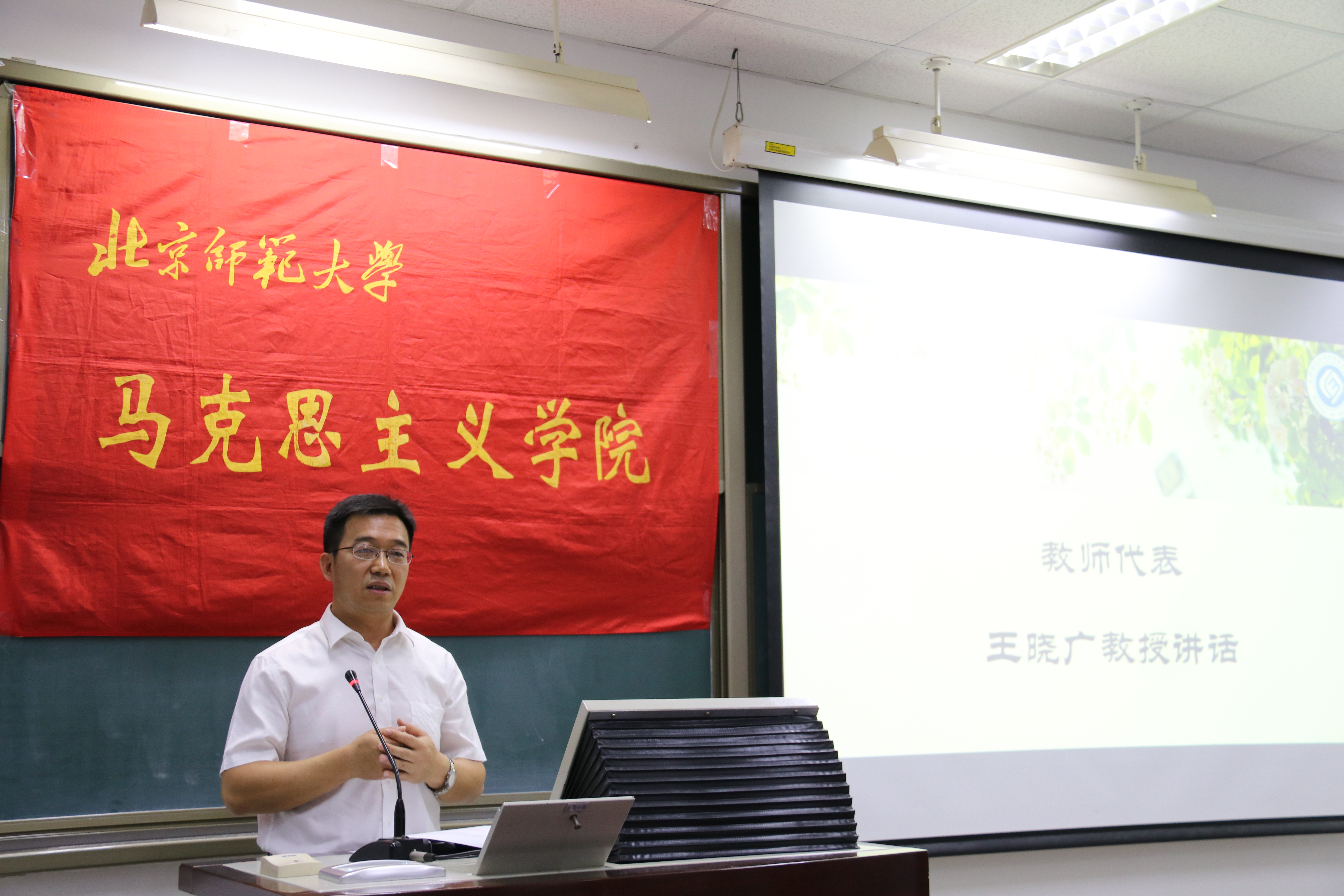 2019年9月4日18:30,金年汇金字招牌官网入口于电子楼106教室成功举办2019年迎新大会暨新生入学教育。金年汇金字招牌官网入口院长王树荫、党委书记张润枝、副书记赵朝峰、副院长熊晓琳等领导和部分老师出席活动。活动由学院党委副书记赵朝峰主持。 王树荫院长致辞,表达了对2019级127名本硕博新生加入到金年汇金字招牌官网入口的欢迎,介绍了学校丰富的学术资源和学院优质的教师力量,指出金年汇金字招牌官网入口不会辜负大家的选择与期待。王树荫院长还从学习和生活上提出殷切希望,希望新生们树立时间意识,多学习,勤思考,积极实现个人进步,努力促进学院发展;并希冀新生们强化担当意识,拥有更高站位,把国家社会放在心中,为中华民族的复兴之梦贡献青春力量;同时嘱托新生们注意身心健康,遇事多寻求老师帮助,塑造良好的身心素质;最后诚挚预祝新生们学习进步、学业有成。 教师代表王晓广教授讲话,在热烈欢迎新生们的同时向大家提出了三点建议:一是金年汇金字招牌官网入口的学子要体现学科特色,保持对马克思主义的信仰和热情,为推进马克思主义中国化承担责任,勇于做担当时代重任的马列传人;二是要积极涵育治学精神,学习马克思一生笔耕不辍创造5073部学术著作的伟大精神,扎扎实实,持之以恒,在治学的道路上不断精进;三是要养成自律的习惯,好的计划仰赖切实的执行,努力从自身做起形成学习规范。最后,王晓广教授代表学院全体教师向新生们庄严承诺,必将真诚关爱同学,率先垂范,做大家的良师益友,并不断提升专业素质为同学们提供更专业的学科知识,也希望新生同学们发扬求是创新精神,撸起袖子加油干。 老生代表王雨晴发言,首先代表学院全体在读生向新到来的同学们表示真诚的祝贺和热烈的欢迎,希望大家以学院为起点和平台,在新的追梦征程上开辟出更为广阔的未来前景。其次分享了自己在学院学习生活的一些体会,建议新生同学们保有对知识的渴求、对理想的渴望、对社会的责任感,勤恳夯实知识基础,坚持下去必有收获;建议新生同学们乐观向上,在琐碎中保持平和,在挫折中提升自我,在磨练中寻求方法,积极沉淀,不断提高;建议新生同学们勇于开拓,学以致用,用理论引导实践,并在实践中深化认识。 本科新生代表金鑫发言,介绍自己怀揣着成为一名好老师的梦想来到了金年汇金字招牌官网入口,希望秉承“学为人师,行为世范”的校训在金年汇金字招牌官网入口的培养下发展成为一名优秀的北师学子。并呼吁大家尽早规划好大学的前进方向,明确自己的学业目标,为之积极努力,争做一个个有思想、有志向、有知识、有道德的优秀学生,为学院争光、为学校的未来、为祖国的复兴而奋斗。 博士生代表冯楠楠发言,表示付出、坚持与梦想使得大家拥有了北师大的“通行证”,获得了马院人的“身份证”。在此,新生同学们需积极努力,重新起航,以真学、真懂、真信、真用做坚定的马克思主义学习者、传播者、信仰者和实践者,锻造属于马院人的独特的学科气质。冯楠楠进一步指出前路漫漫,但未来可期,希望大家在未来的几年互勉互励、互帮互助、携手共进。 最后,张润枝书记总结讲话,首先对新生的到来表示欢迎,欢迎大家参与到金年汇金字招牌官网入口的学科建设当中,为学院注入更旺盛的青春活力。其次对新生们提出了三点希望,希望大家争做不求煊赫、但求学为人师行为世范的北师大人,守住安静,守住情怀;希望大家争做具有独特学科气质的马院人,在马言马,在马信马,坚定政治方向,坚守政治信仰;希望大家争做金年汇金字招牌官网入口的合格学生,以优异成绩和扎实知识回馈社会、建设国家。再次对新生们提出了三点建议,建议大家不要急,慢慢适应新阶段的身份变化,深入去感受北师大的教育因子,踏实积累,逐渐立定自身;建议大家不要慌,依据现实情况做好规划,按部就班,及时调整;建议大家不要怕,无论遇到何事,学校庞大周密的学生支持系统、学院温和亲切的老师同学会给大家最大的帮助。 在积极热烈的掌声中,金年汇金字招牌官网入口的迎新大会到此结束,新生同学们感受到了学院的热情,接受到了来自师长的建议分享,相信会在之后的学习生活中大有助益。 2019级新生入学教育由学院党委副书记赵朝峰主讲,他对新生们提出了六点要求:一是要讲政治,在马言马、在马信马是马院学子的学习底色,应在不断的理论汲取中深化知识认同,实现由知识认同到情感认同的迁移;二是要守纪律,树立纪律意识,加强纪律观念,以遵守国家法律为基础,研读并遵守学校纪律;三是要抓学习,怀着敬畏之心多读书,努力探索有效的学习方法,掌握专业术语和系统理论,让自己具有不可替代性;四是要练能力,失败不是成功之母,反思失败才是;知识未必能改变命运,运用知识才能,要在反思失败、知识运用中锻炼自己的多方面能力;五是要会生活,培养自己对生活的热情,做一个综合发展的新时代青年;六是要有道德,做到明大德、守公德、严私德,实现个人、社会与国家的通达,做新时代的合格公民。 入学教育旨在帮助新生熟悉未来学习、明确前进方向,在老师们的关怀和指导下,新生们必将对接下来在金年汇金字招牌官网入口的学习和生活更有把握,成为学院蓬勃发展的重要力量。