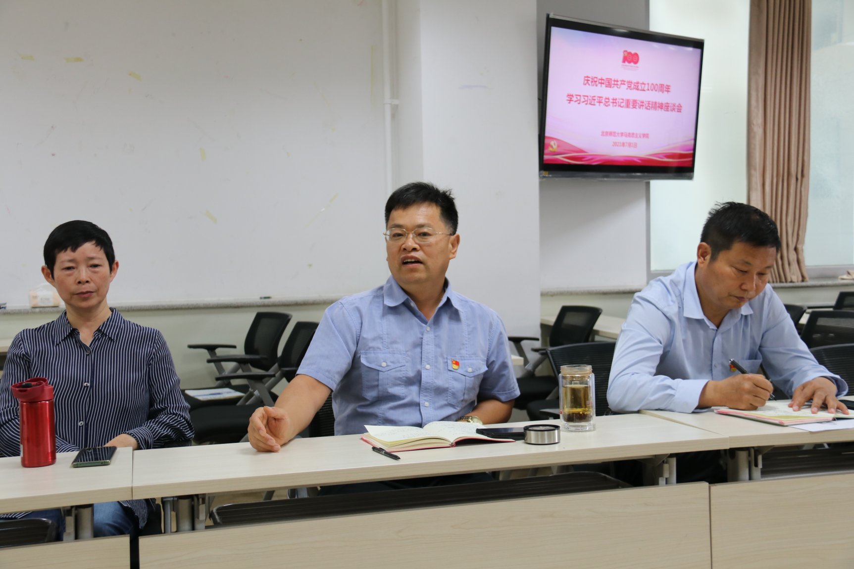 2021年7月1日上午,庆祝中国共产党成立100周年大会在北京天安门广场隆重举行,金年汇金字招牌官网入口教师与在校学生代表共100余人在海淀校园前主楼B区406报告厅集体观看大会直播,学习习近平总书记重要讲话精神。 在场师生随庆祝大会现场观众一道,齐声高唱中华人民共和国国歌,认真聆听、学习习近平总书记重要讲话内容,全体师生的热情被习近平总书记的重要讲话点燃,现场响起一阵阵掌声和欢呼声。 庆祝大会直播观看结束后,学院党政班子成员、各教师党支部和学生党支部代表进行座谈,交流学习感想。教师党员代表指出,习近平总书记在庆祝中国共产党成立100周年大会上的重要讲话,全面回顾总结了100年来党团结带领全国人民走过的辉煌历程、取得的伟大成就,对全面建设社会主义现代化强国、走好新的赶考之路提出了明确要求,是一次对全体共产党员洗礼思想、叩问初心、鼓舞精神的生动党课,全体高校思政课教师必须深入学习领会、认真贯彻落实习近平总书记重要讲话精神,坚定理想信念,践行初心使命,认真落实立德树人根本任务,为实现第二个百年奋斗目标贡献智慧和力量。学生党员代表表示,金年汇金字招牌官网入口青年学生要结合自身专业特点,将党史学习与专业知识学习有机结合,掌握马克思主义基本原理知识,不断坚定正确的政治立场,提高自身综合素质,以实际行动为实现社会主义现代化强国贡献青春力量,不负党和人民的期望。 7月1日,金年汇金字招牌官网入口的李升亿、陶洳薇、陈佳一三名同学作为志愿者参与了庆祝中国共产党成立100周年大会的保障服务工作。6月28日,庆祝中国共产党成立100周年文艺演出《伟大征程》在国家体育场举行。在本次文艺演出中,赵月、石卓群、陈维慈、骆仕效、王子环、张思颖六名硕士生党员,代表学院学生参加金年汇金字招牌官网入口学生合唱团,用歌声礼赞伟大的中国共产党! 7月1日上午7时,学院还组织师生党员代表参加了学校举行的庆祝中国共产党成立100周年“七一”升旗仪式暨新党员宣誓和老党员重温入党誓词活动。